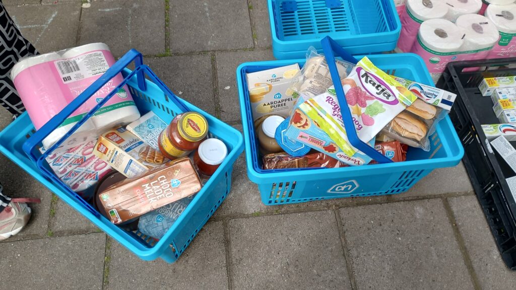 Vandaag weer een hele mooie krattenactie gedaan. Dank je wel lieve klanten van Albert Heijn Wateringen. 2 mandjes vol voor 30 gezinnen van de club van 4